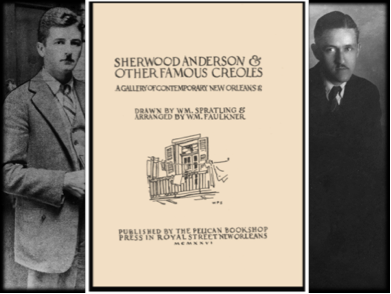 A special copy of a rare and fragile book described by The Booklover’s Guide to New Orleans as “one of the great literary curiosities in the city’s history.” The book comprises Spratling’s drawings of himself, Faulkner, and 41 of their acquaintances–artists, musicians, academics, preservationists, and socialites, “artful and crafty ones of French Quarter” with some of their uptown friends and patrons. One was novelist Sherwood Anderson, and Faulkner’s introduction parodies Anderson’s style.